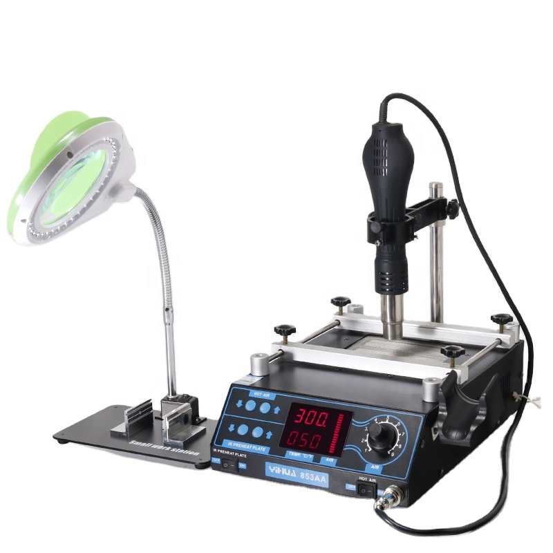 Yihua 853aaa + estação de retrabalho, multifuncional ferro de solda dessoldagem pistola de ar quente estação de retrabalho de solda